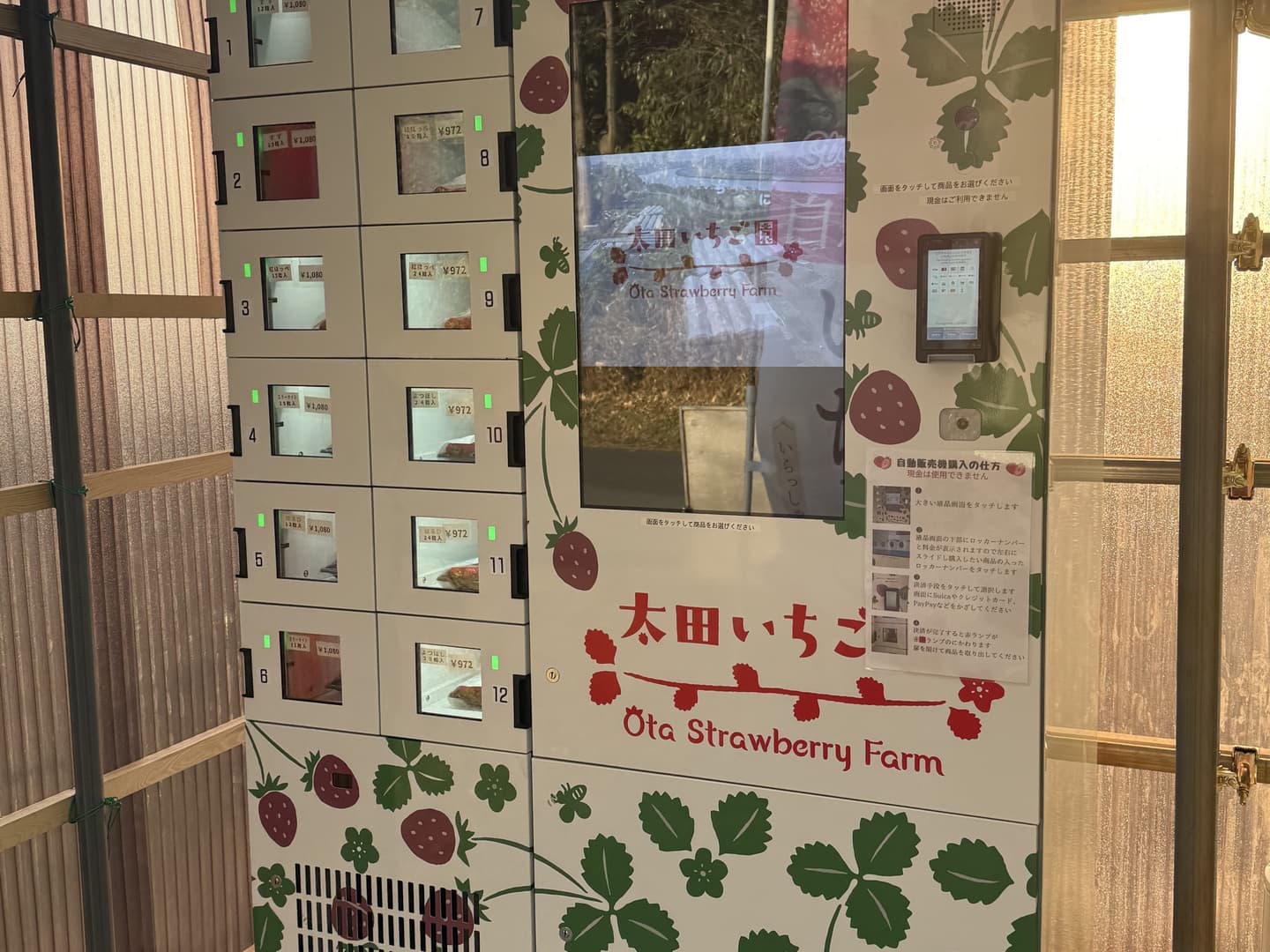 いちご専用の自動販売機を設置いたしました。